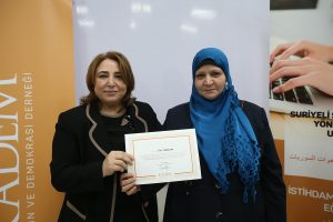 Kursiyerlerden Etemad Loukhaj, “Bu fırsatı bizlere sunduğu için Türkiye’ye ve KADEM’e teşekkür ediyoruz. Sizler bu kursu açarak savaştan kaçan ve şehrinize sığınan bizlere yardımcı oldunuz. Destek verdiniz. Burada bizlere hayata tutunmamız için çok şey kattınız. Dikiş kursunda meslek sahibi olduk ve özgüven kazandık. Yeniden ayağa kalkmayı öğrendik. Tüm öğretmenlerimize ve emeği geçenlere teşekkür ediyoruz” derken; Ayşa Hamşo, “Arkadaşlarım adına sizlere teşekkür ediyorum. Buraya meslek öğrenmek için geldik. Sıfırdan başladık. Bütün Suriyeliler adına hocalarımıza teşekkür ediyoruz” diye belirtti.