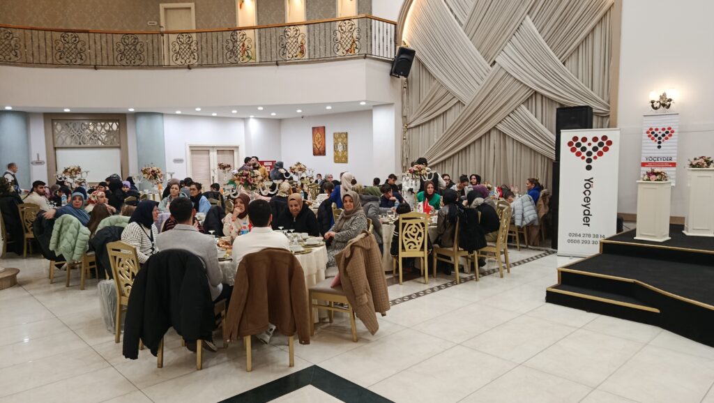 Sakarya’da faaliyet gösteren YÖÇEYDER’in geleneksel iftar programı bu yıl Şaheser Düğün ve Kongre Alanı’nda gerçekleştirildi. Tamamı yetim aile annelerinden oluşan özel davetli kitlesinin ağırlandığı programa, dernek üyeleri de eşleriyle birlikte katıldı. Yaklaşık 500 kişinin aynı sofrada buluştuğu organizasyon, dayanışma ve vefa duygularının ön plana çıktığı anlamlı bir akşama sahne oldu.