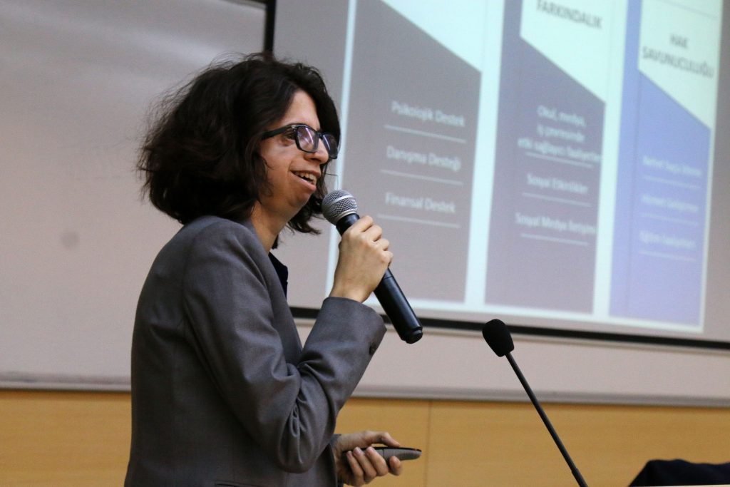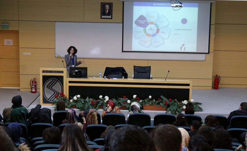 SAÜ Kültür ve Kongre Merkezinde yapılan seminere Yüzümle Mutluyum Derneği Yönetim Kurulu üyesi Zeynep Çakır konuşmacı olarak katıldı.
