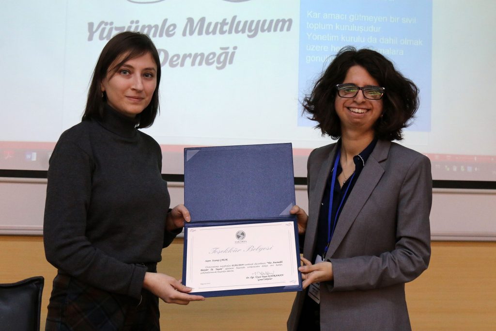 Seminerin sonunda konuşmacı Zeynep Çakır’a teşekkür belgesi takdim edildi.