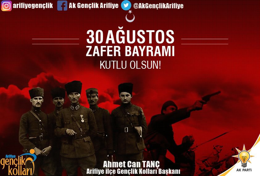 Arifiye Ak Parti gençlik Koları Başkanı Ahmet Can Tanç’ın Zafer Bayramı dolayısı ile yayınladığı mesajı;